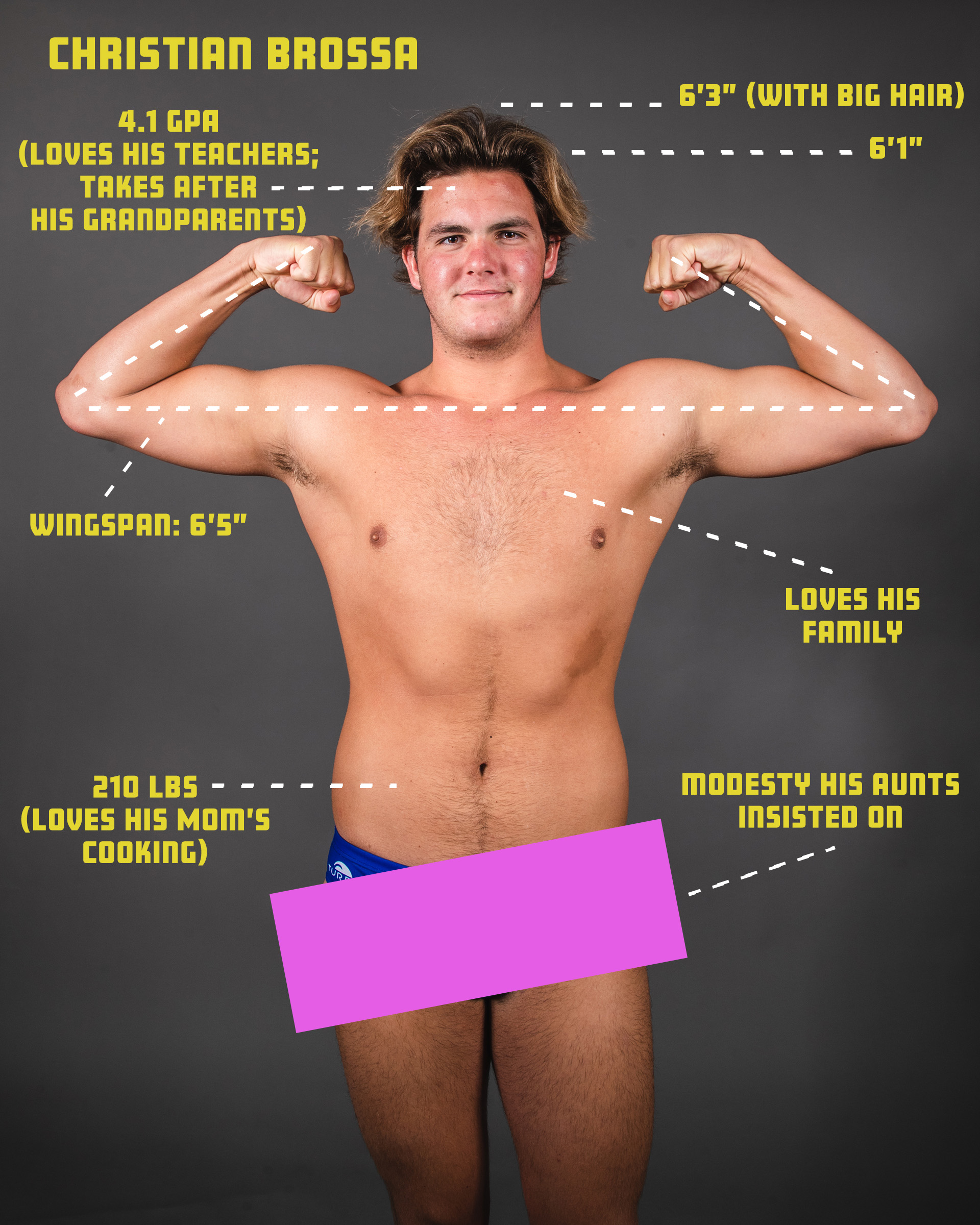 Hey! Thanks for stopping by this website my dad and I built together (thanks, Dad!) - My name is Christian Brossa and as you can probably tell, I play water polo. As of Fall 2023, I'm a senior in high school at Santa Margarita Catholic HS in Rancho Santa Margarita, California - a little town tucked up against the foothills in Orange County, California.
